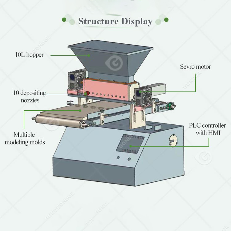 With only one device, you can easily make soft candy, hard candy, toffee, chocolate candy, and lollipop, and the shape and taste can be customized freely-this is our innovative table top gummy depositor! The desktop candy depositor is specially designed for laboratory, small batch production, factory proofing, and personalized customization, which not only has high precision, high efficiency, and high automation, but also is simple to operate. It is controlled by a full servo motor, with a multi-language PLC touch screen and a humanized interface, which can be easily used by users all over the world.